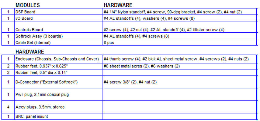 These are the modules and hardware parts supplied in the Quick Kit. Note that some pre-assembly might already be done with the pc boards ...