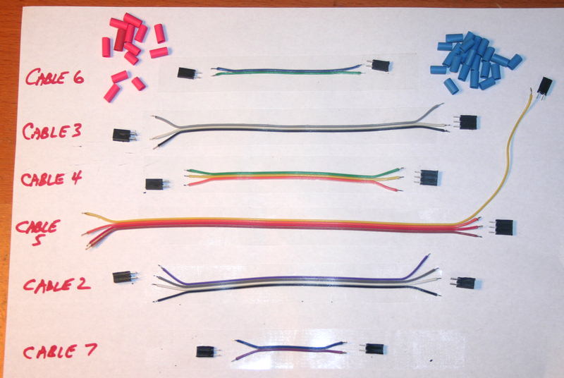 STEP 5: Organize the supplied ribbon cables according to the diagram above for the right length of cable, the right connector for each end, and the red and blue shrink tubing.